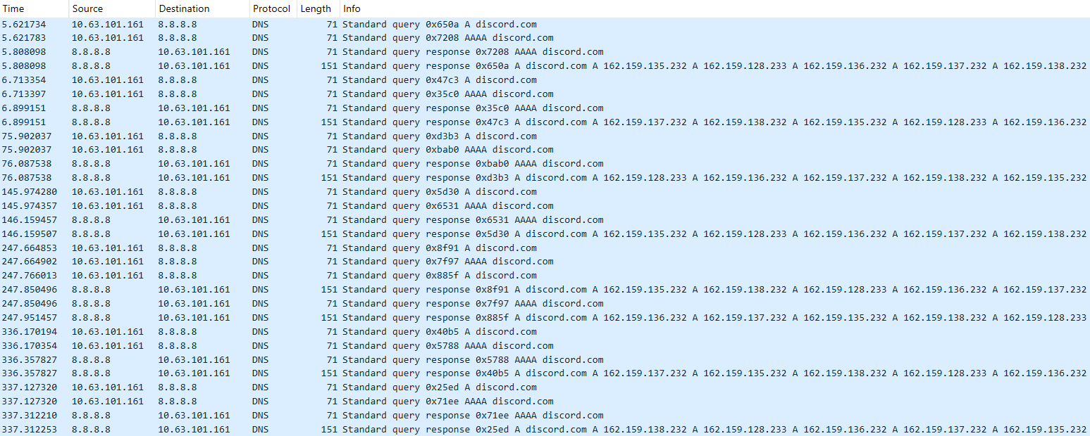 Another method for detecting these communications involves tracking multiple DNS queries to the discord.com domain.