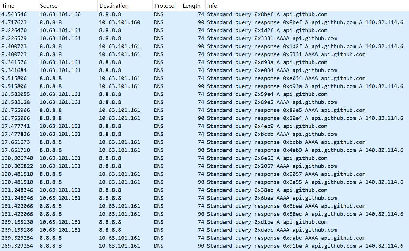 Additionally, multiple DNS queries to the service can be logged in the traffic.