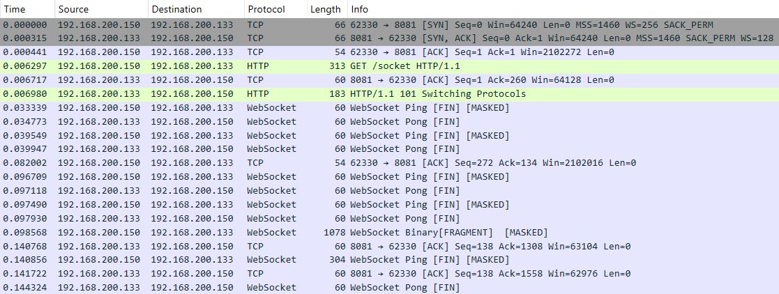If data encryption is applied, the network traffic for agent communication appears as shown in the screenshot below.