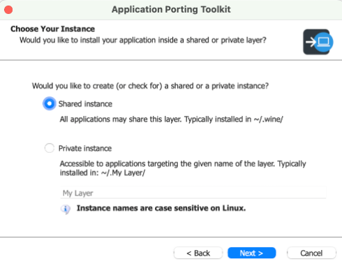 For example, the original Windows setup instructions might specify to create files in “C:\Program Files” and the Application Porting Toolkit will redirect the files into “~/.wine/drive_c/Program Files.” Areas of the setup instructions that refer to the Windows Registry will be forwarded to Wine’s registry hives: “~/.wine/system.reg” and “~/.wine/user.reg.”